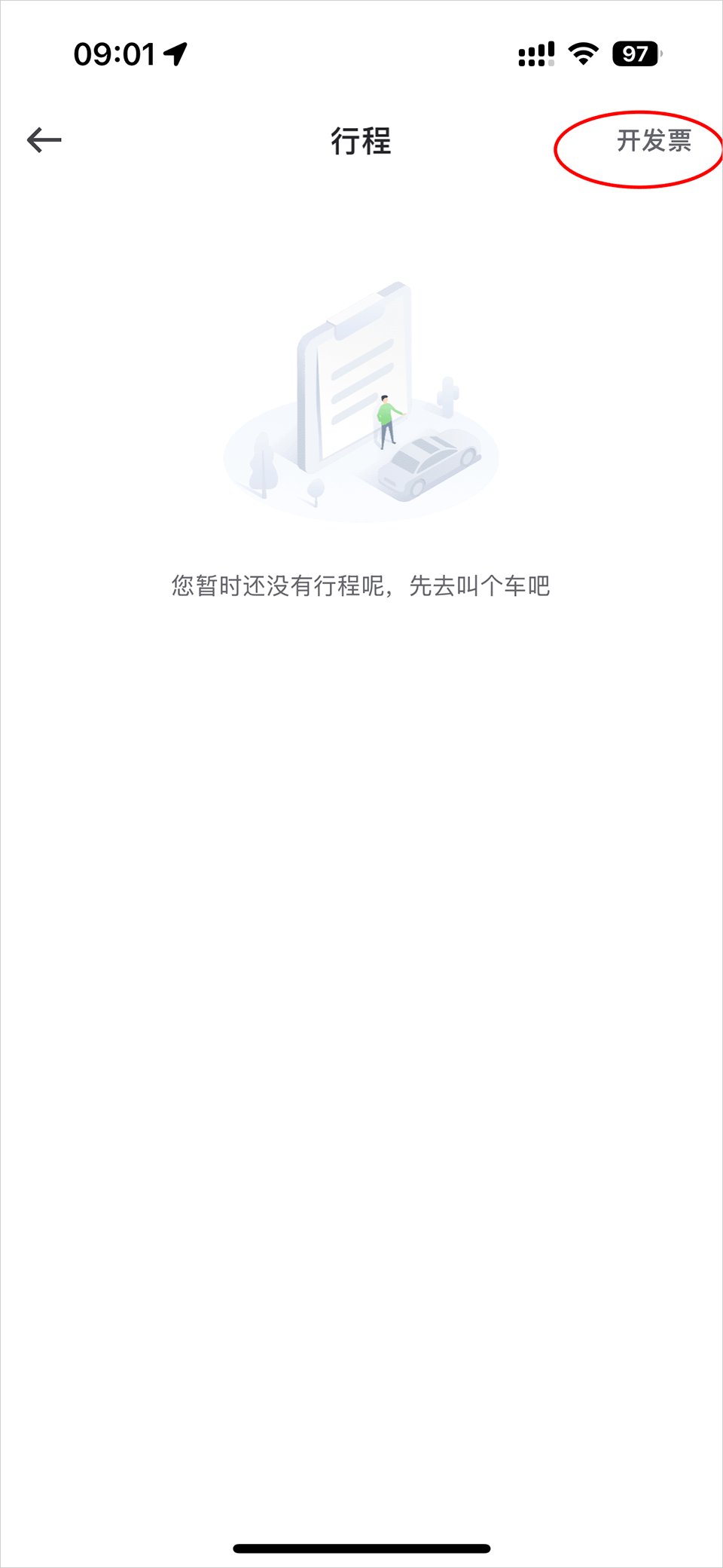 3、进入到行程管理页面之后,右上角有一个开发票的端口,点击进入。