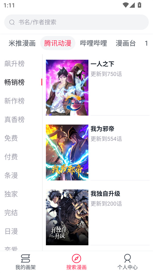 2、我们可以通过泼辣漫画app来选择不同的漫画源,然后挑战各种漫画进行阅读。