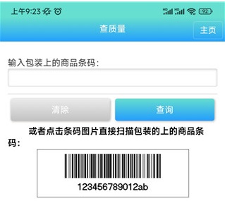5、你还可以对商品进行质量查验,通过输入包装上的商品条码或点击条码图片直接扫描;