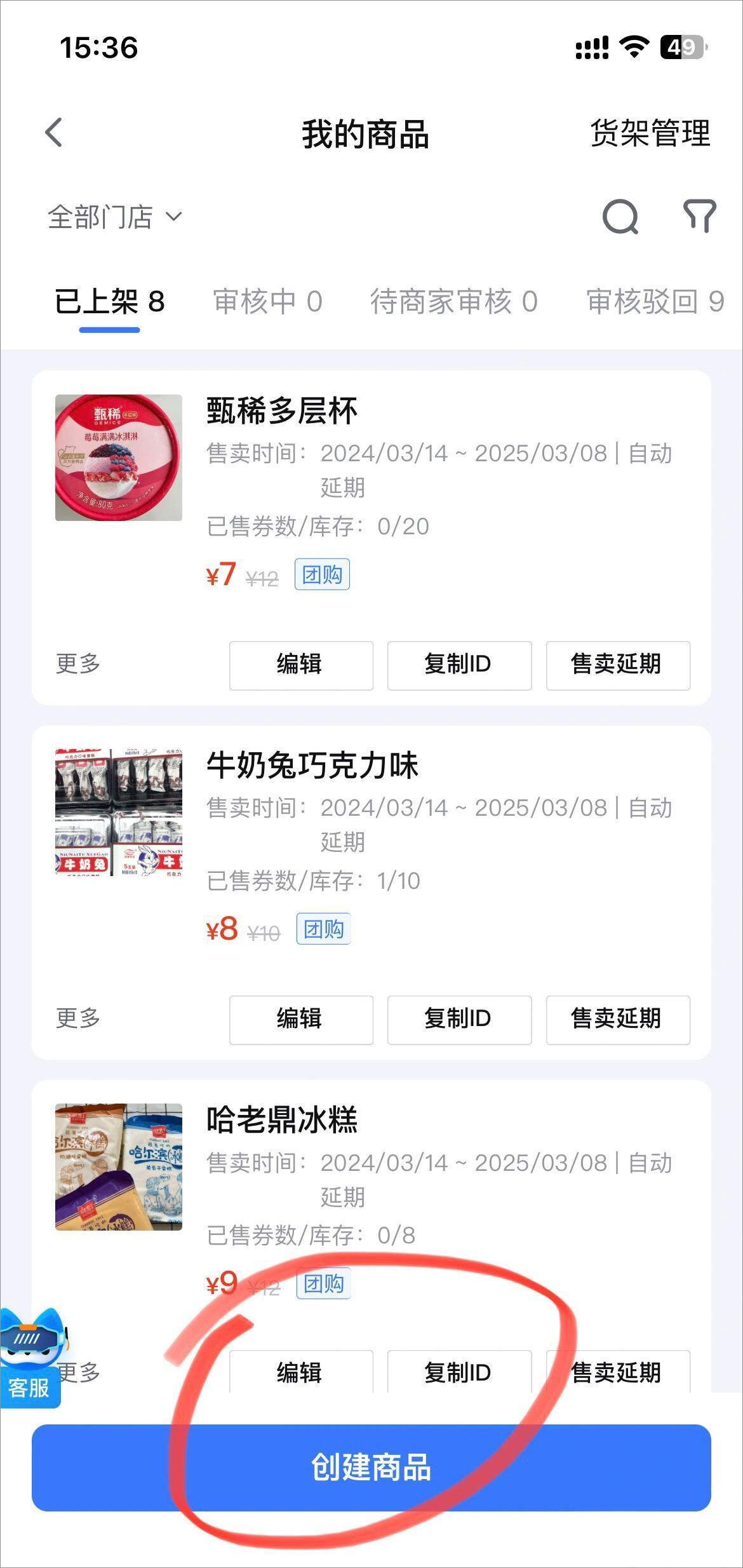 3、完善所有信息后,可查看所有可以添加团购的物品