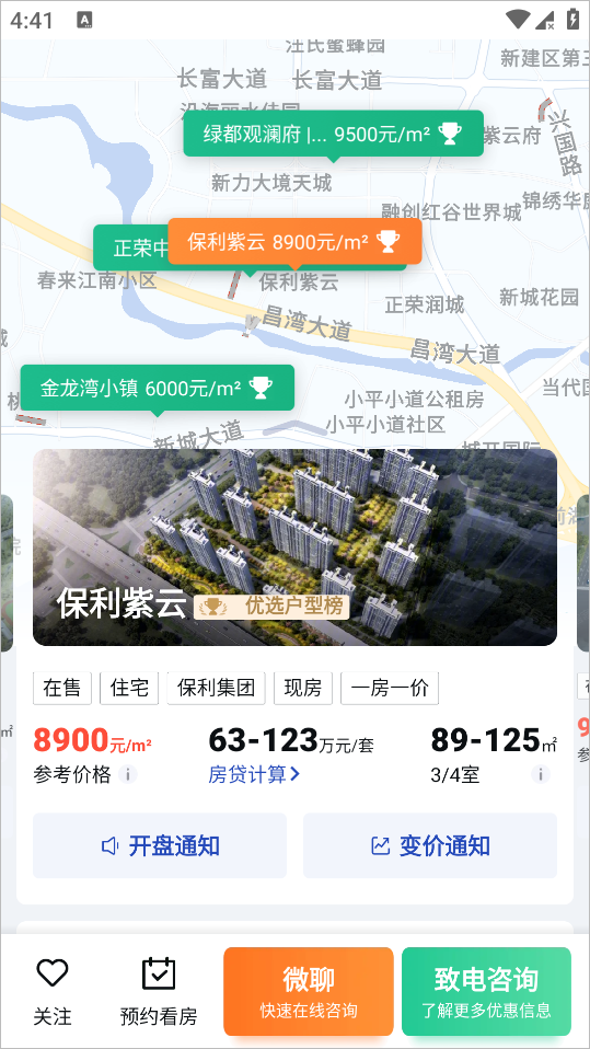 3、业内强大的小区数据库,定制你关注的房源房价