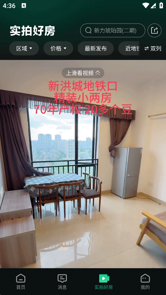 5、除了利用地图看房以外,还可以点击实拍刷视频看房上方也可以直接搜索