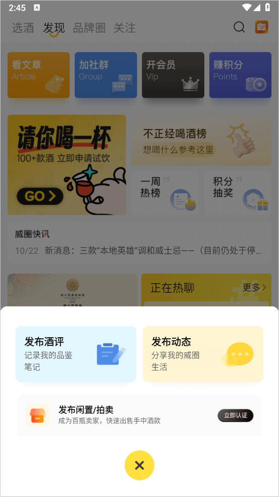免费送酒活动持续进行ing,参与趣味话题活动,海量奖品让你拿到手软。