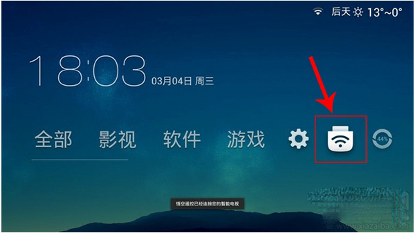1、在电视上打开app点击远程操控,选择微信扫描微信二维码