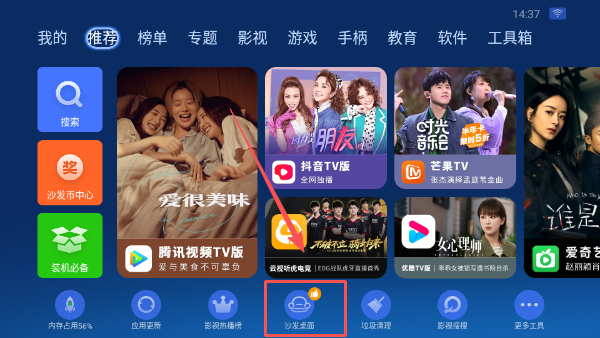 5、安装后成功后电视上即可在主页看到沙发管家app