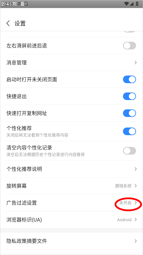 3、在设置页面点击广告过滤设置