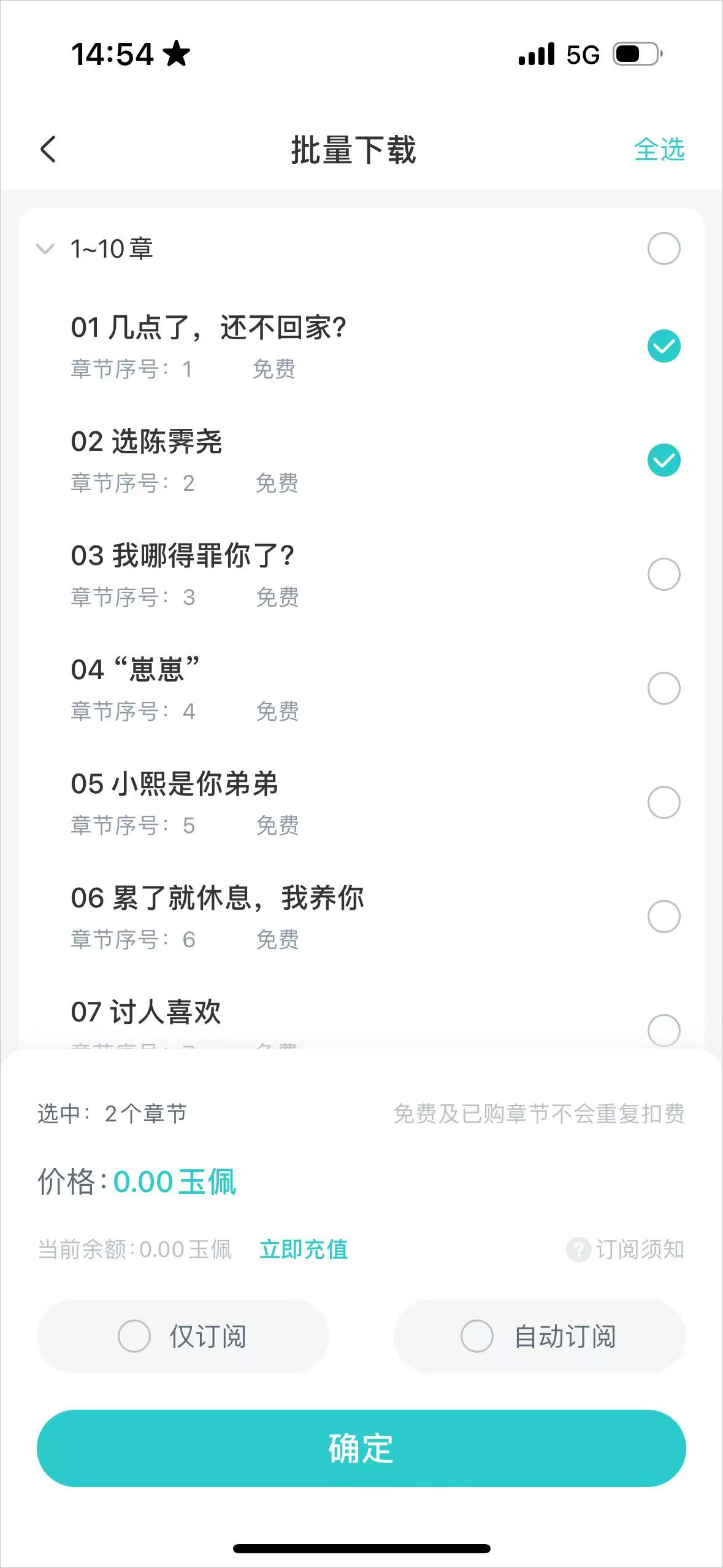 2、跳转到下载界面后就可以选择需要下载的章节,点击“确认”下载啦
