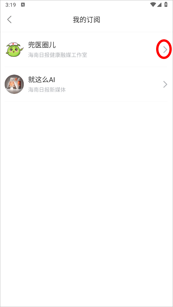 3、点击你要取消订阅公众号后的小箭头图标