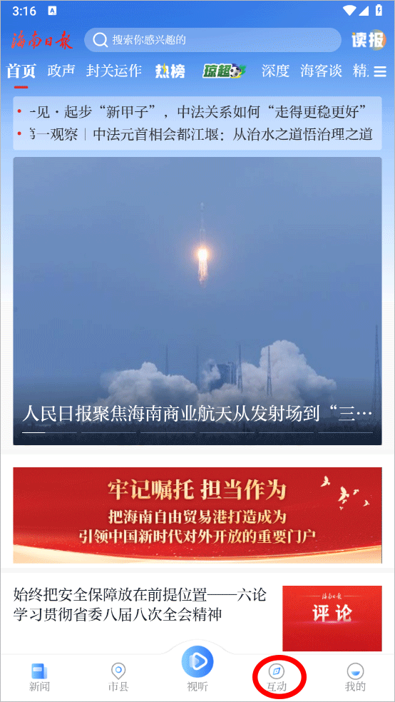 2、留下视频评论,通过海南日报app中的评论功能可以查看别人评论或留下自己的评论;