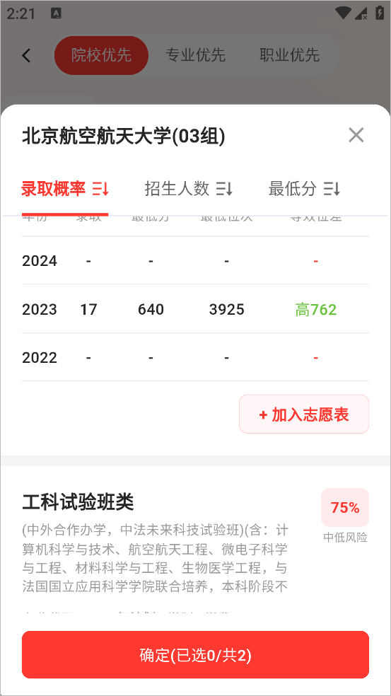 4、可以看到学校的专业推荐以及往期的具体分数线,选择好后可以点击“加入志愿表”