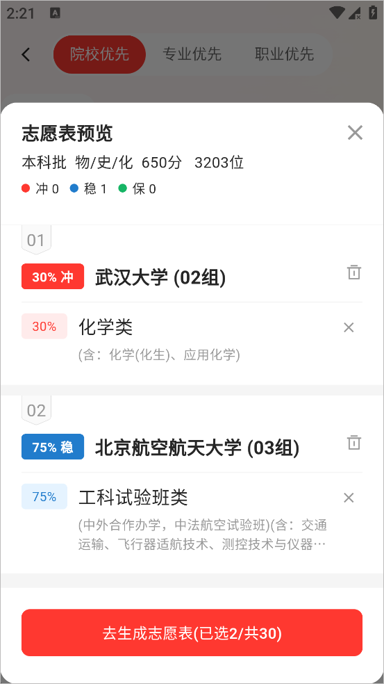 智能推荐:基于大数据分析和智能算法,根据考生的分数、位次、选科等信息,为考生推荐适合的院校和专业,提高志愿填报的准确性和成功率