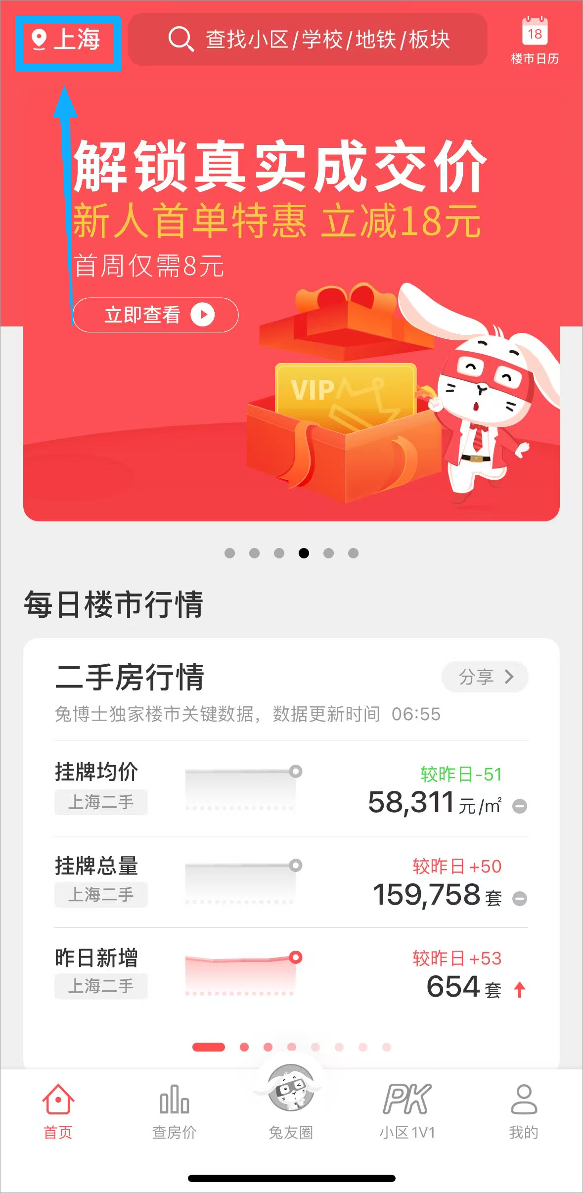 1、打开app后点击右上角的定位可以设置目前需要找房的所在城市