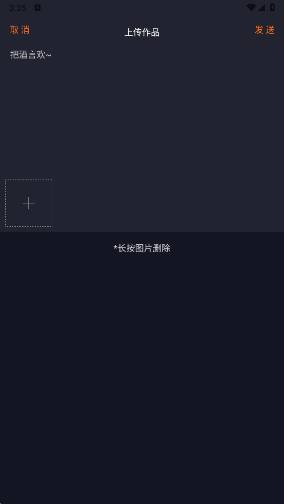 4、点击“+”选择图片并编辑确认,添加好说明内容后点击右上角的“发送”即可