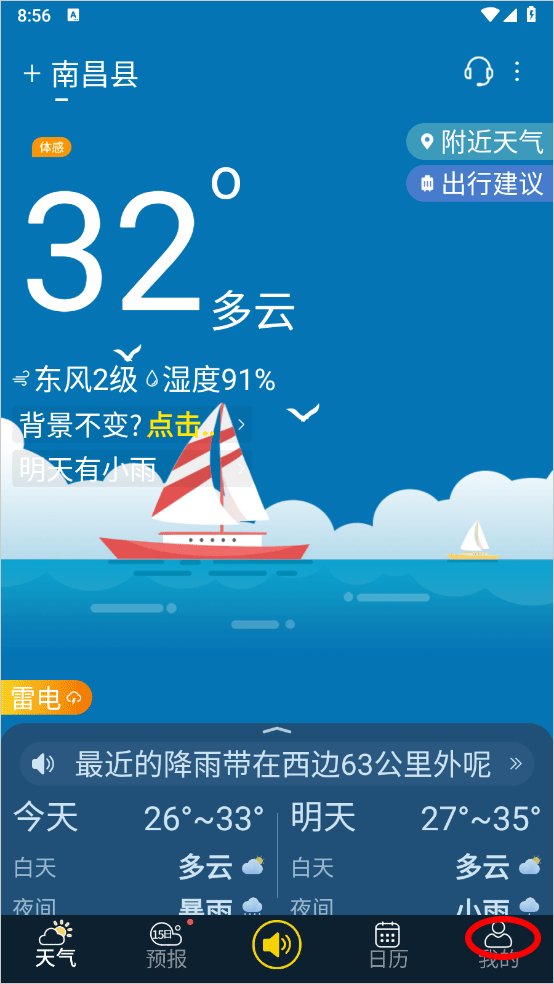 1、打开七彩天气预报最新版本进入首页点击下方我的栏目