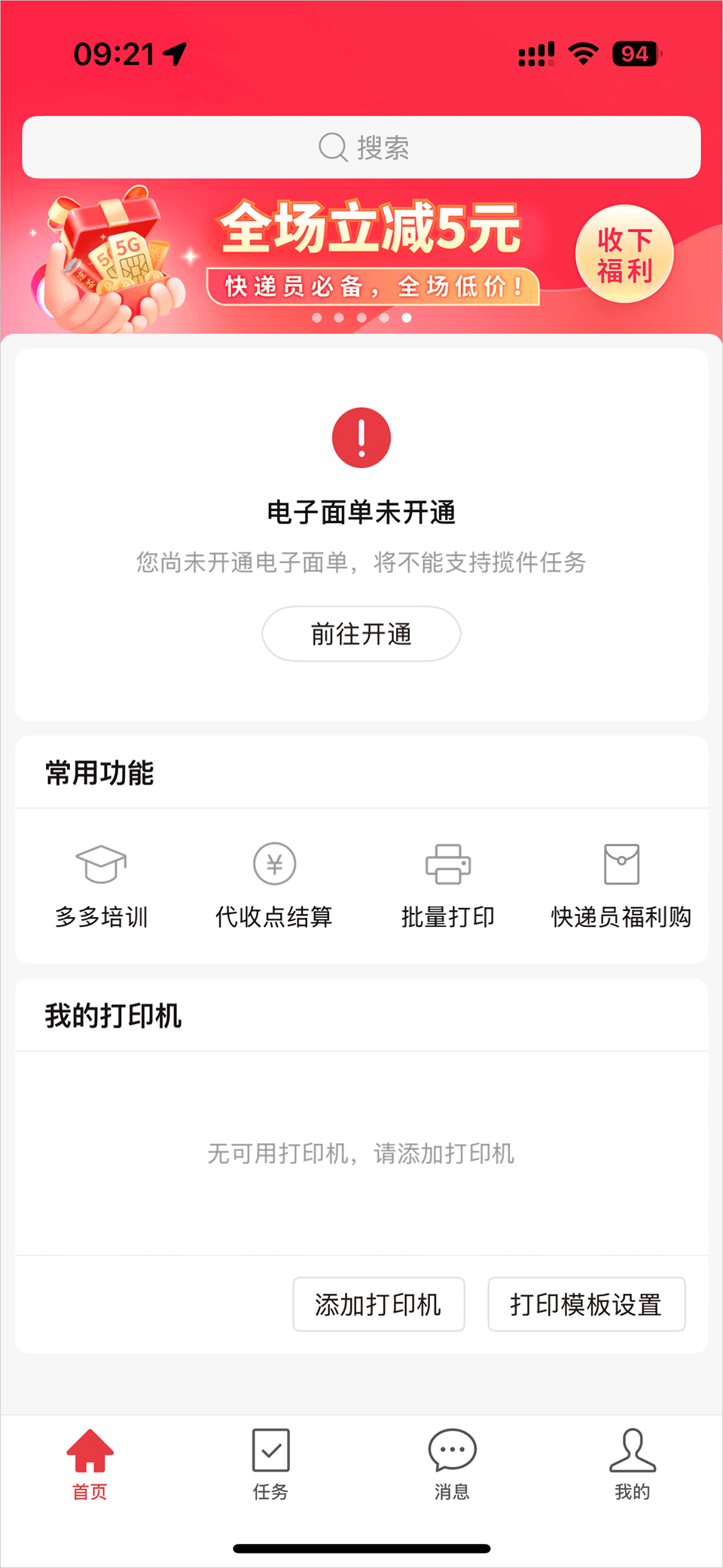 3、【消息提醒】网点邀请、催揽提醒、电子面单余额提醒,一目了然