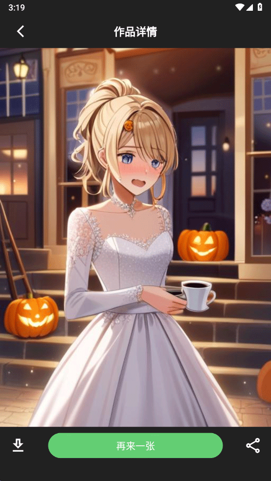 4、稍等一会就能自动生成作品,可自行下载哦,如不满意可重新细化关键词点击在生成一张