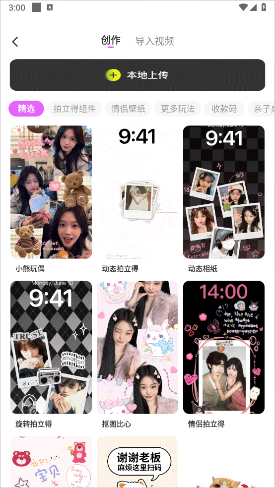4、【随心自由创作】相册自定义壁纸:支持本地上传,提供精选模板,自动裁剪尺寸、适配图标布局,3秒换装无压力,定制专属于自己的壁纸!