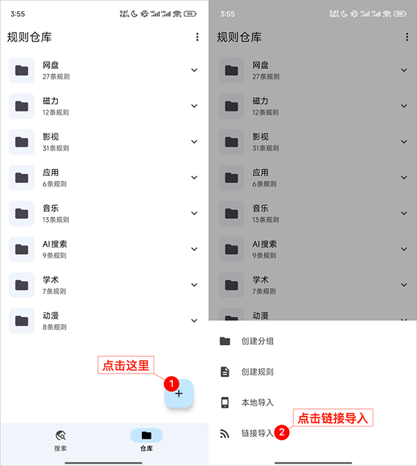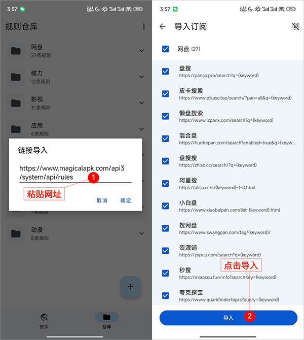 2、然后点击粘贴上面的地址到输入框,然后导入即可: