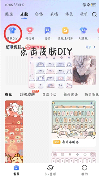 3、可以依次按照背景、按键、贴纸、字体、音效的顺序逐渐丰富自己的键盘啦!