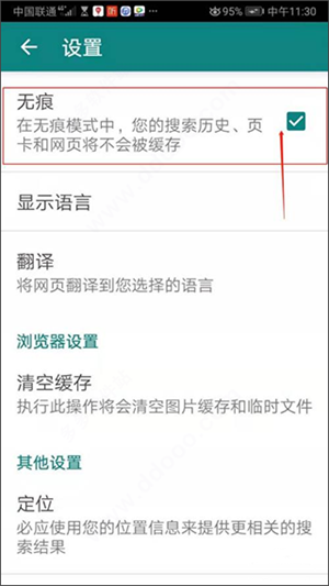 4、在设置页面点击勾选无痕。