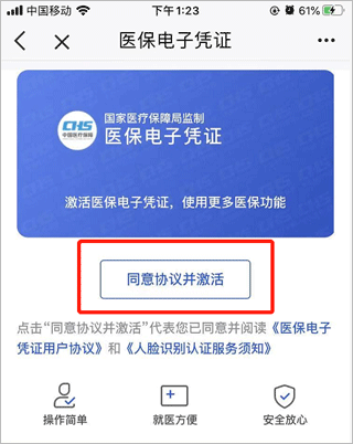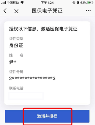 3、根据提示完成人脸认证。授权身份信息,点击激活并授权
