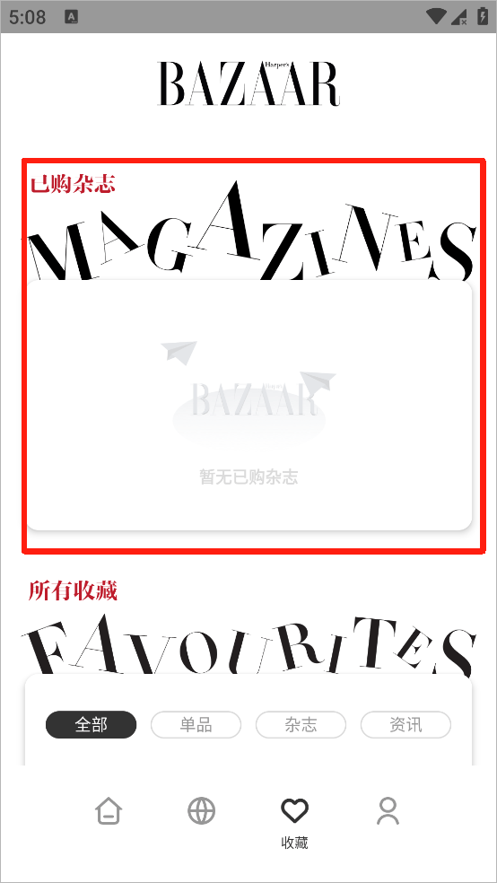 2、除了在我的页面以外还有在收藏页面也可以直接看到已购的杂志