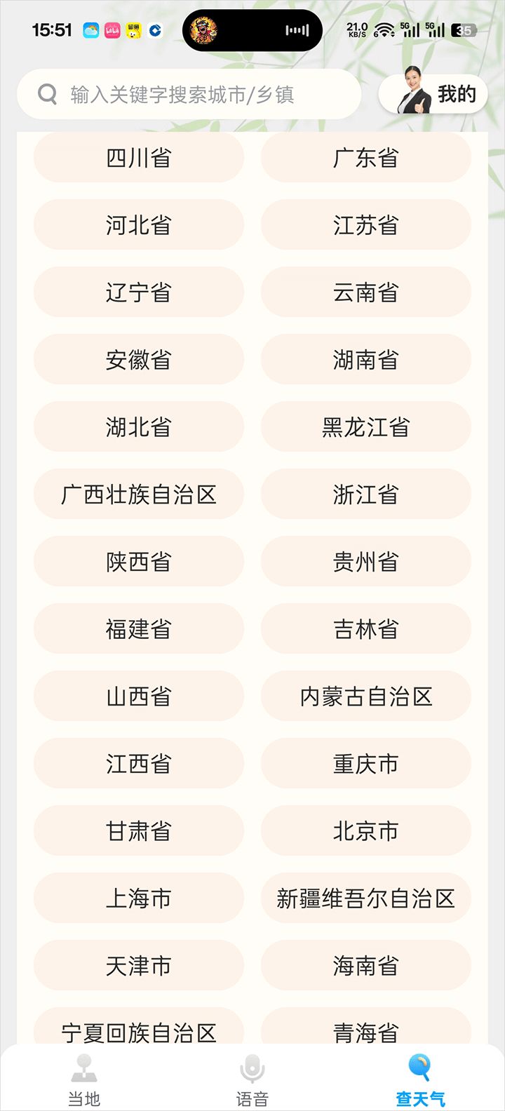 为用户提供出色的天气预报查询功能,城市划分非常详细,可以根据自己的实际选择。