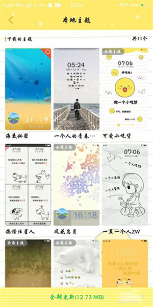 2、在主题页面下载几个主题,然后点击“我的”,在我的主题可以查看自己下载的主题。