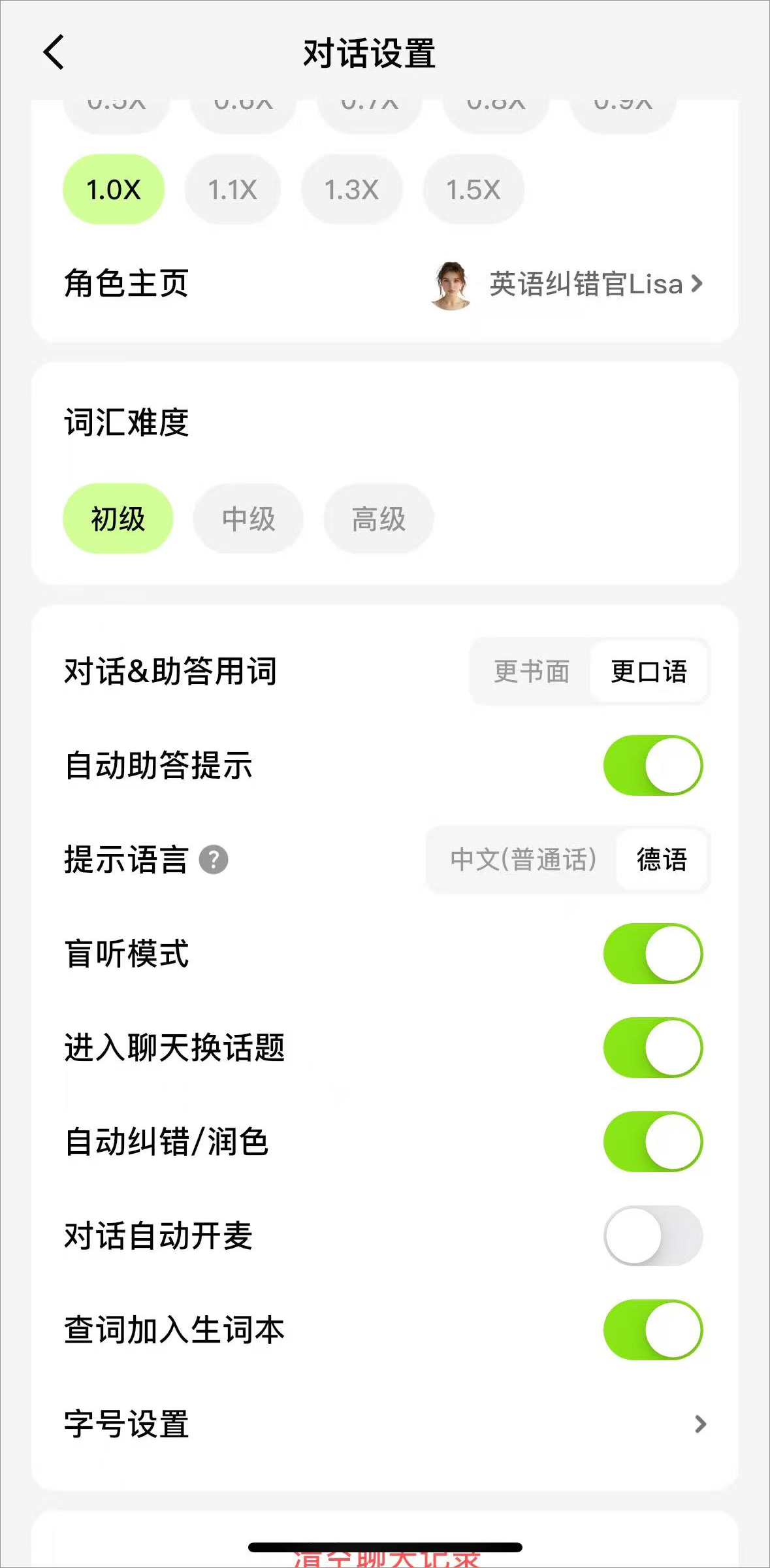 TalkAI练口语支持英语、中文、日语、德语等多国语言,采用纯正的发音音色,支持不同语速调节,让你与智能AI进行自然且流畅的对话。我们提供多种对话难度,跟踪你的对话水平并实时反馈,帮助你智能实现语言学习目标。