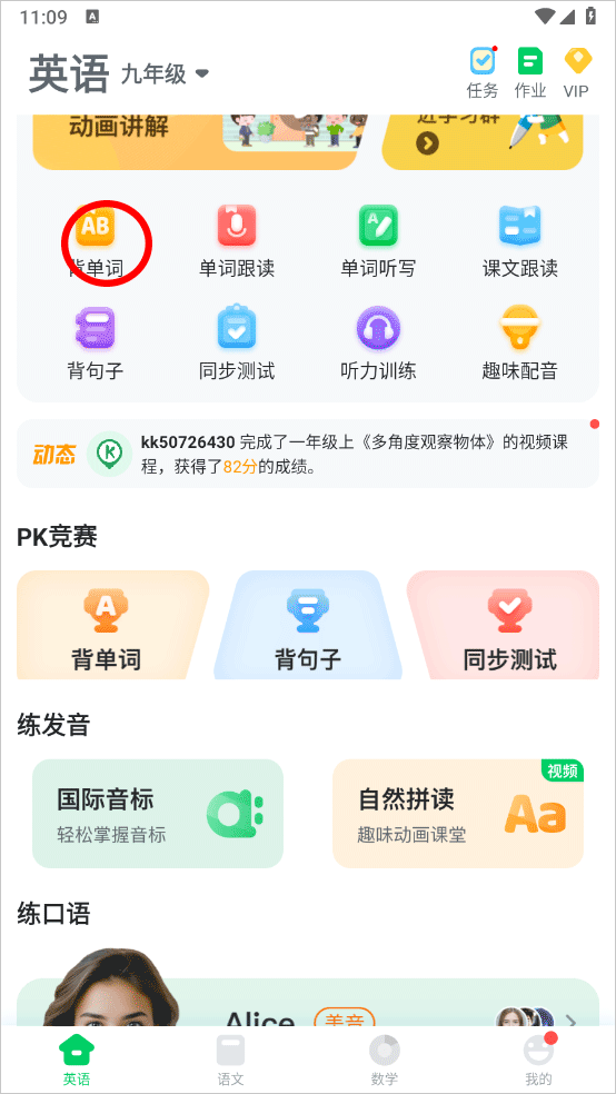 字词听写:1~6年级课文字词同步,趣味闯关,快乐听写。