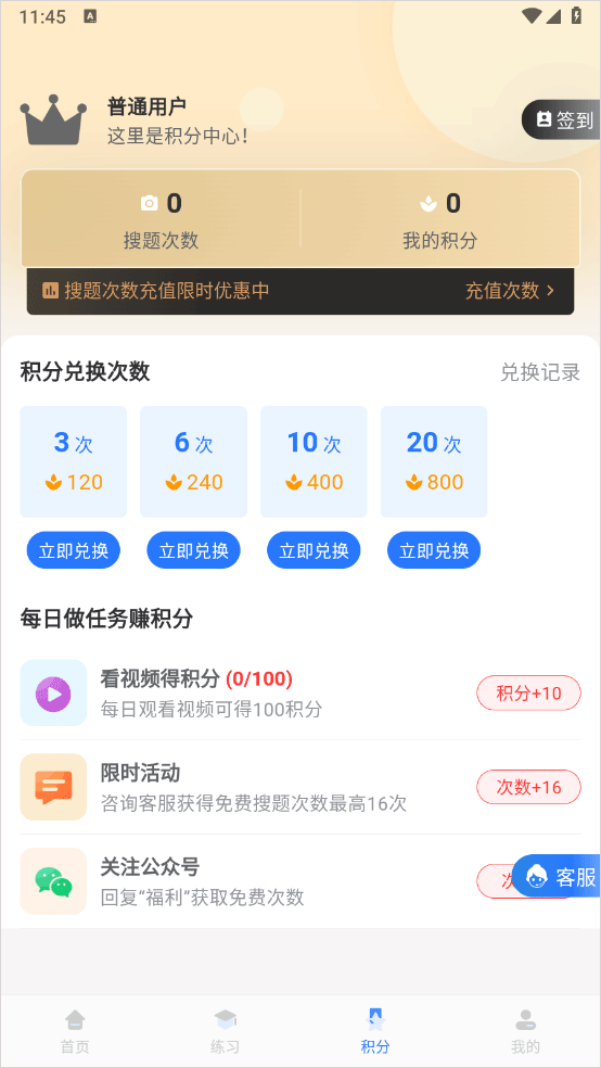 3、在积分页面用户可以做任务赢得积分兑换次数的