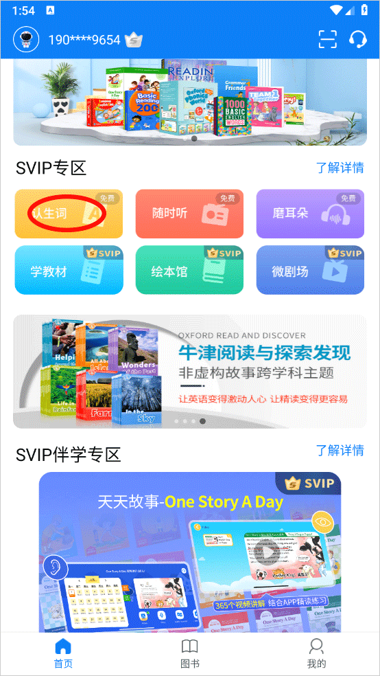 可以在小凡博士app这里获取平台提供的英语读物资源,学生就能进行英语练习