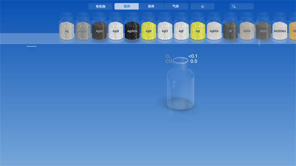 3、还用一系列材料,包括了:有机物、固体、液体、气体等等,我们可以自由搜索自己需要的物质。
