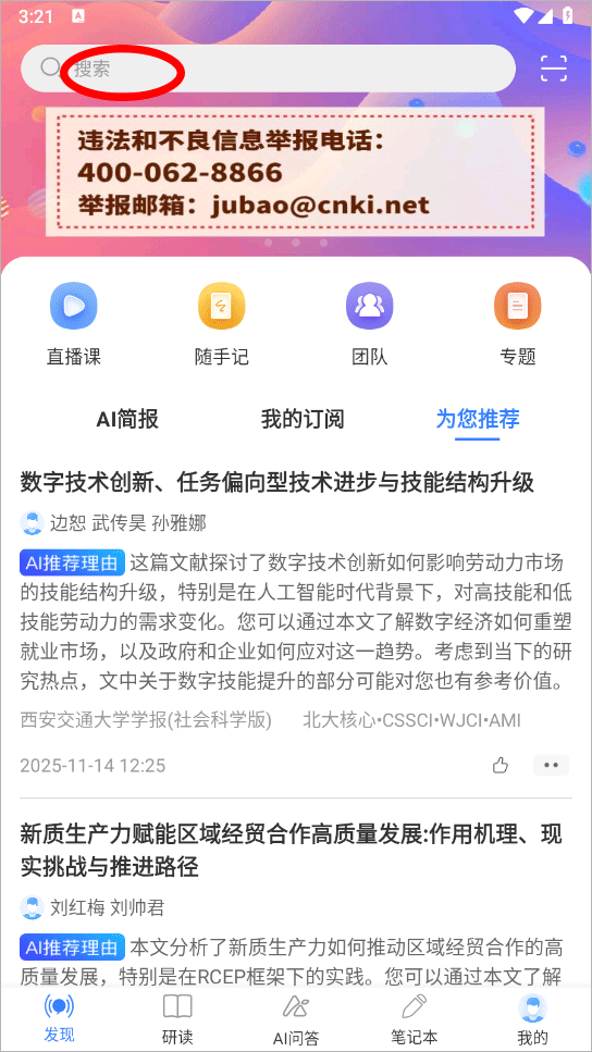 知网研学app是一款研学型数字图书馆软件,其涵盖海量的文献资源,如:教育、医学、信息、财经等各个领域,支持阅读学习、文献检索等多种功能,还具备笔记、摘录等特色功能,可以帮助用户轻松梳理文献的结构与脉络,方便大家对各种期刊文献进行管理。同时知网研学app提供动态互动的学习方式,用户可通过云服务模式推动碎片化学习,充分高效的积累知识,并且界面简洁明了,包含专题、笔记、文摘以及写作等不同专区用户可快速上手查询有效资料。