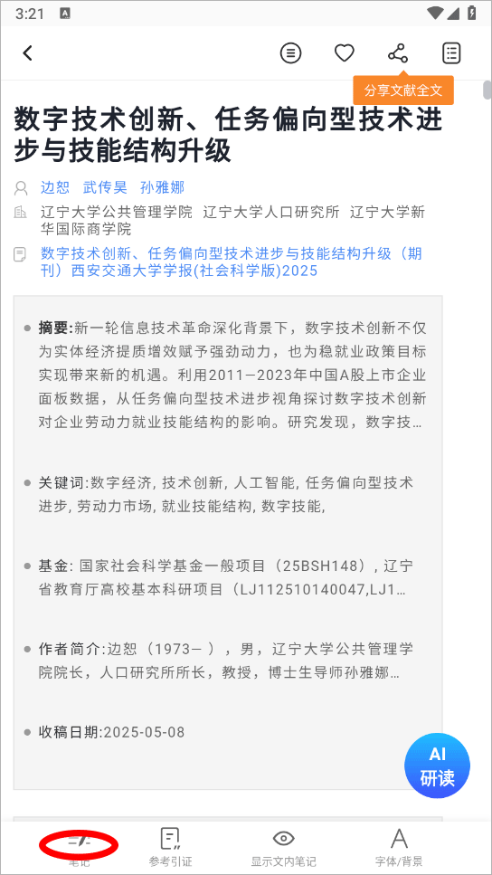 3、XML碎片化文献研读:记笔记、文摘收录、文献内容重组、查看学术释义、一键获取参考/引证文献、学习笔记汇编等