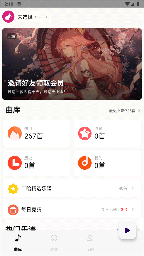 用户可自己弹奏乐谱上传共享,也可以直接导入乐谱文件。