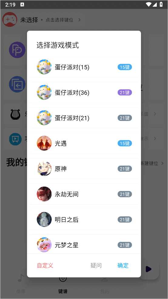 应用通过模拟手指点击屏幕从而实现手游弹琴,通过使用无障碍服务完成模拟点击。目前支持多款热门游戏,还支持自定义游戏键位。