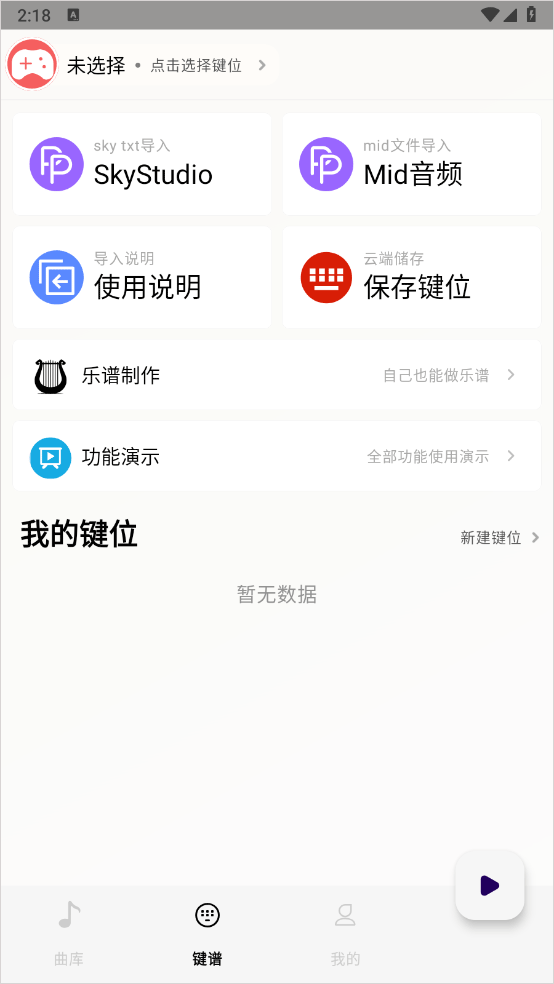 选择内存里的mid文件快速导入,可进行移调,音轨选择,乐器选择等精调操作。调整后快速上传即可使用调整后的乐谱。