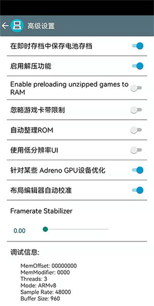 1、去掉“在即时存档中保存电池存档”,以免造成冲突;(不是bug,而是在正常运行情况下造成的冲突)