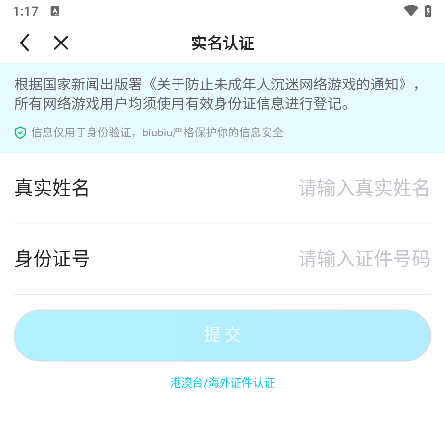 4、若是手机登录需要实名认证,biubiu账号不需要。