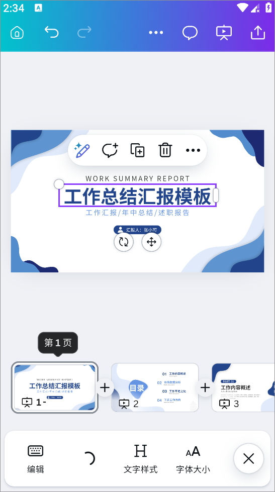 4、即可直接运用模版进行编辑,可以修改文字内容、添加图片、修改字体大小等
