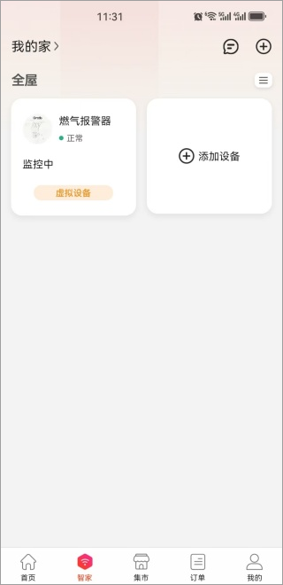 1、打开app点击智家页面,点击添加设备,进入设备设置页面
