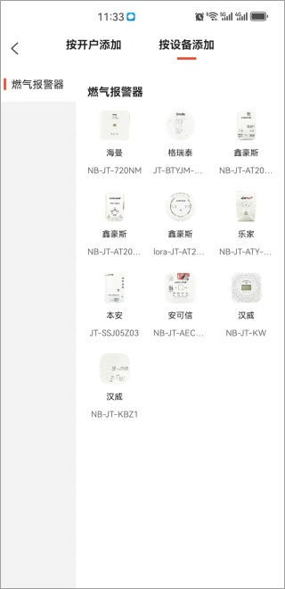 3、接着来到软件按设备添加页面选择需要添加的智能设备