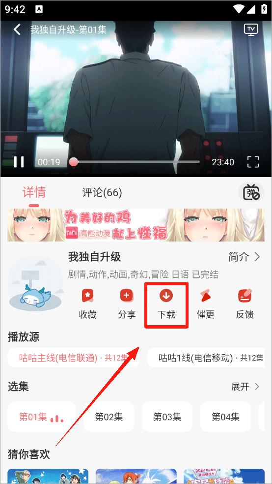 2、来到动漫播放界面之后,点击下方的下载功能,如图所示。