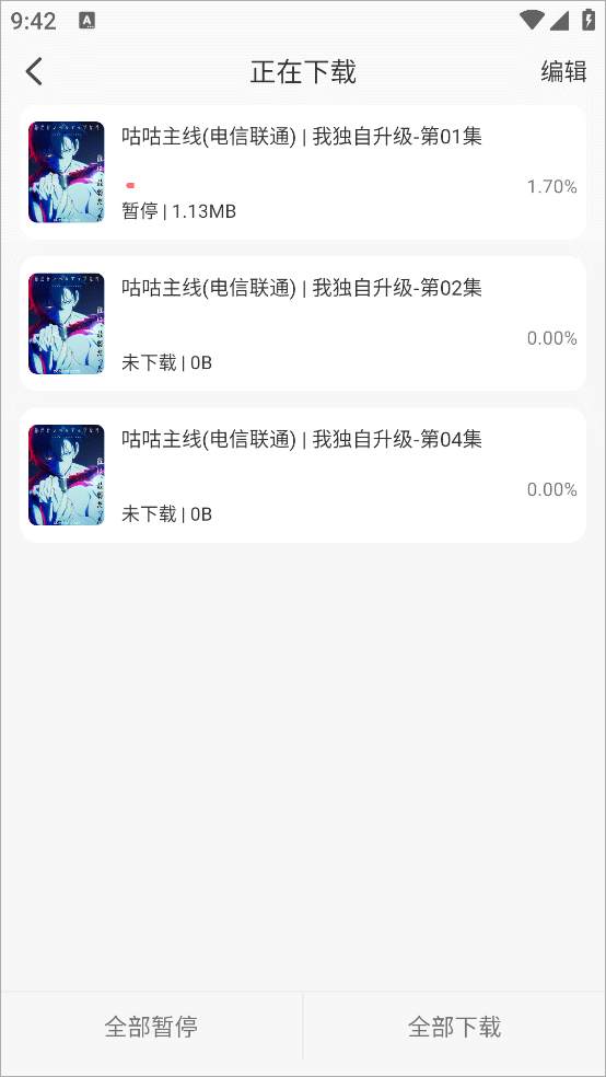 4、如下图所示,下载完毕之后就能观看离线动漫啦,右上角的编辑可以删除动漫。