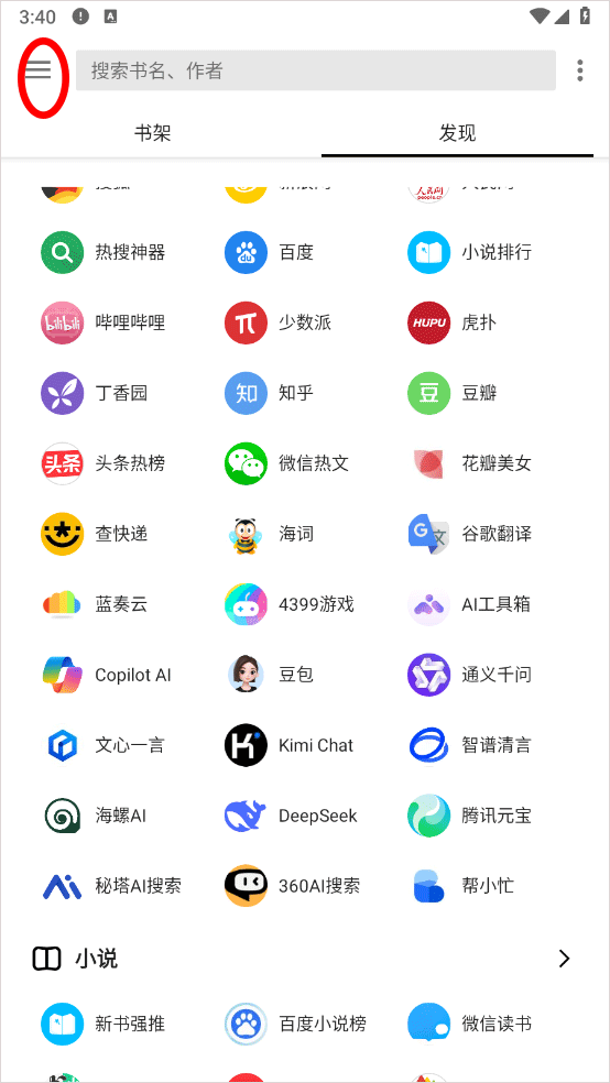 1、进入软件首页点击左上角三条横杠图标