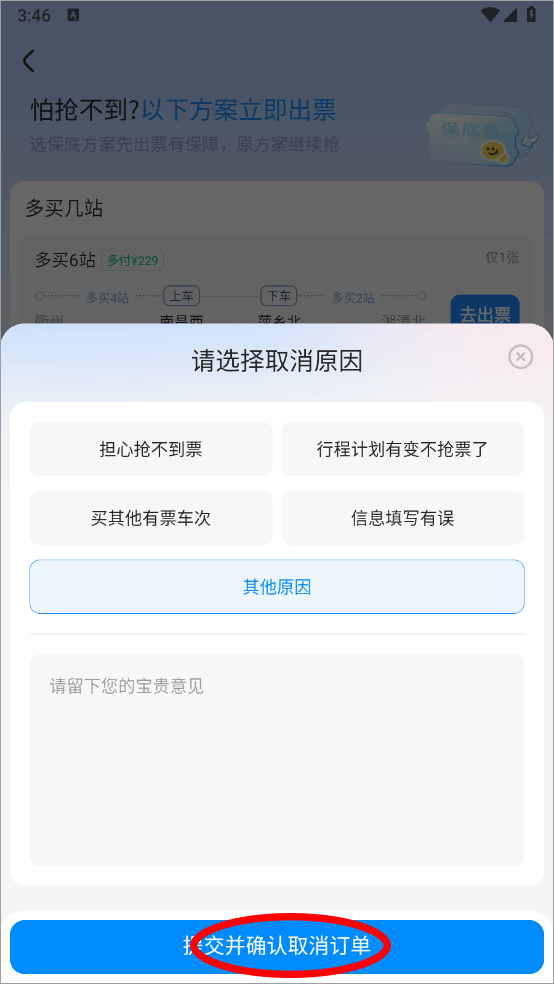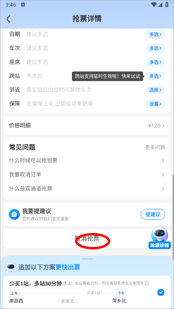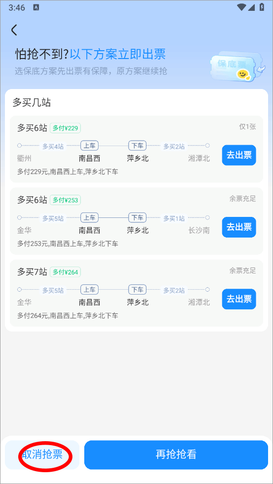 4、系统会为你出具其他方案这时继续点击取消抢票