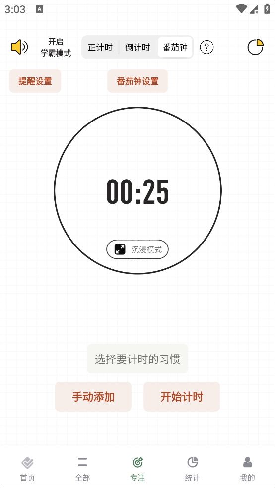 3、专注训练:结合番茄钟模式,进行专注力训练,提升深度工作能力。