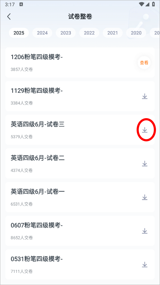 2、进入页面选择你要下载试卷后的下载图标即可下载