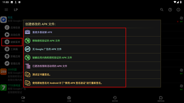 1、破解、移除Google授权验证、移除亚马逊应用商店授权验证、移除Google广告、手动破解五种破解方式
